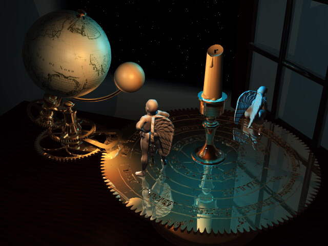 I wanted to create a fairly whimsical feeling with this piece. An orrery was a 19th century instrument designed to show the movements of the earth and moon.